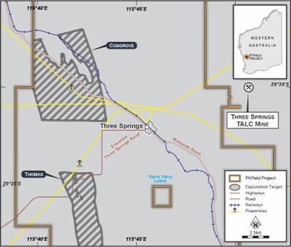 Located within the Mid-West region of Western Australia, near the northern wheatbelt town of Three Springs, the Pitfield titanium project lies 313 km north of Perth and 156 km southeast of Geraldton, the Mid-West region 's capital and major port. The Company has now signed a non-binding co-operation agreement with the Mid West Ports Authority, enabling formal discussions regarding future port access and use of port facilities.