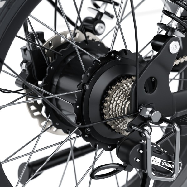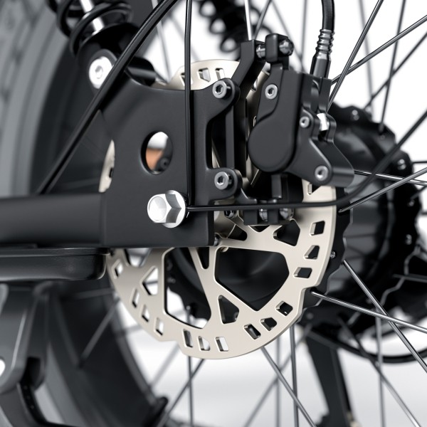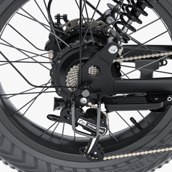 Ride comfort is reinforced through a Dual Shock Absorption System that integrates a suspension front fork with a spring rear shock absorber. This dual-suspension setup enhances vibration damping across uneven pavement, gravel paths, and mixed-terrain environments. Paired with CST BFT tires, the bike maintains traction and stability across diverse riding surfaces.