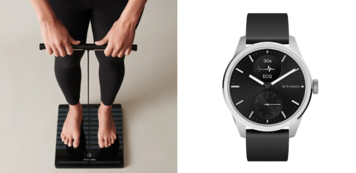 The Body Scan smart scale and ScanWatch 2 showcase Withings ' commitment to innovative health technology. The Body Scan goes beyond traditional scales by analyzing localized fat and muscle mass for targeted fitness insights and providing ECG-based heart rhythm analysis.