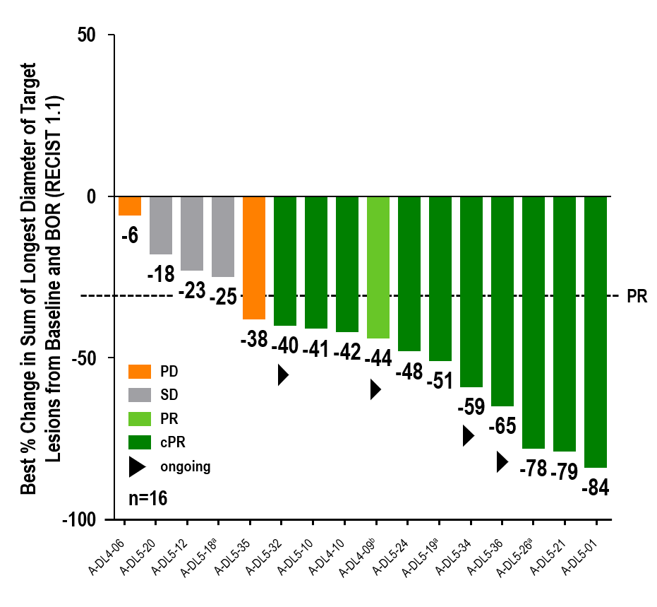 - Disease control rate (DCR) of 88% (14/16)