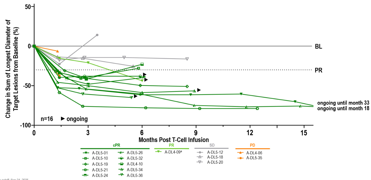 Anti-tumor Activity and Durability:Continued strong anti-tumor activity and durability of anzu-cel PRAME cell therapy