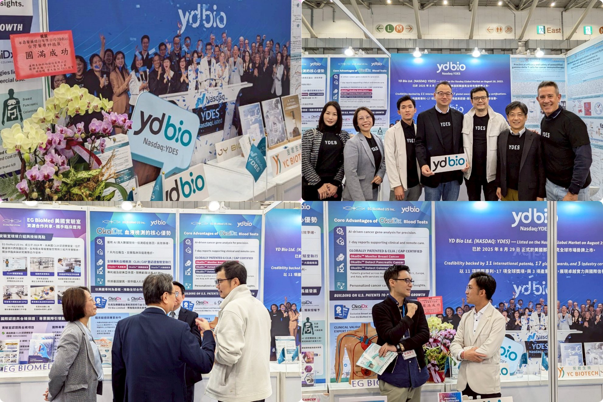 Taipei, Taiwan, Dec. 09, 2025 (GLOBE NEWSWIRE) -- YD Bio Limited (“YD Bio” or the “Company”) (Nasdaq: YDES), a biotechnology company advancing DNA methylation-based cancer detection technology and ophthalmologic innovations, today announced its successful participation in the prestigious 9th Healthcare Expo Taiwan, which was held from December 4-7, 2025, at TaipeiNEX 1. The Company exhibited at Booth No. 4F, M1004, where it presented its latest advances in three core portfolios: early cancer detection powered by DNA methylation and multi-biomarkers, next-generation precision diagnostics and stem cell therapy & exosome platforms focused on ophthalmology conditions. With 1,500+ visitors and 541 on-site surveys in 4 days, this significant event served as a critical gateway for YD Bio to connect with key stakeholders, explore new market opportunities globally, and reinforce its position as an innovator in the world’s healthcare landscape, providing an unparalleled platform to engage with leading hospitals, tech giants, and biotech innovators from across the region and beyond.