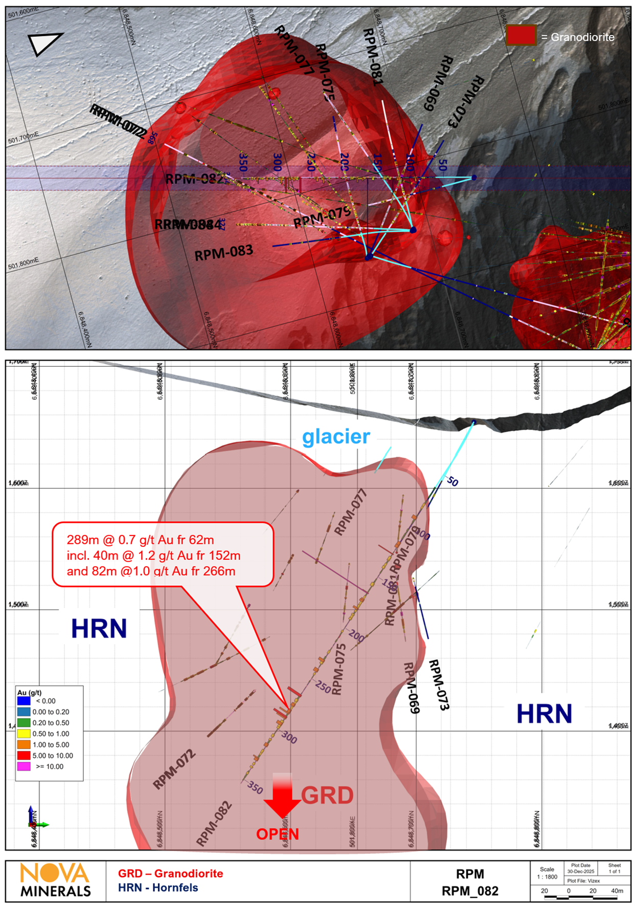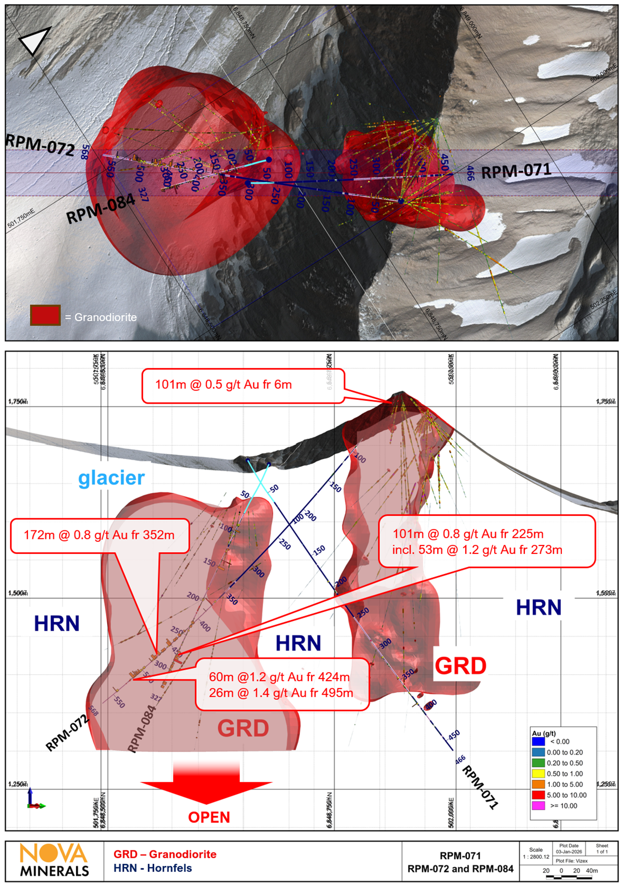 Anchorage Alaska, Jan. 13, 2026 (GLOBE NEWSWIRE) -- Nova Minerals Limited (“Nova” or the “Company”) (NASDAQ: NVA) (ASX: NVA) (FRA: QM3) ) is pleased to announce further drill results from the RPM Valley deposit with the 2025 closely spaced infill results returning multiple broad intercepts >1 g/t Au, and visible gold observed in an Estelle Project record intercept of 0.5 m @ 364 g/t Au, within the Company 's flagship Estelle Gold and Critical Minerals Project, located in the prolific Tintina Gold Belt in Alaska.