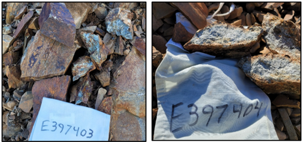Figure 3.Sample E397403 - 5.5 g/t Au and 6.9% Cu; Sample E397404 - 15.5 g/t Au