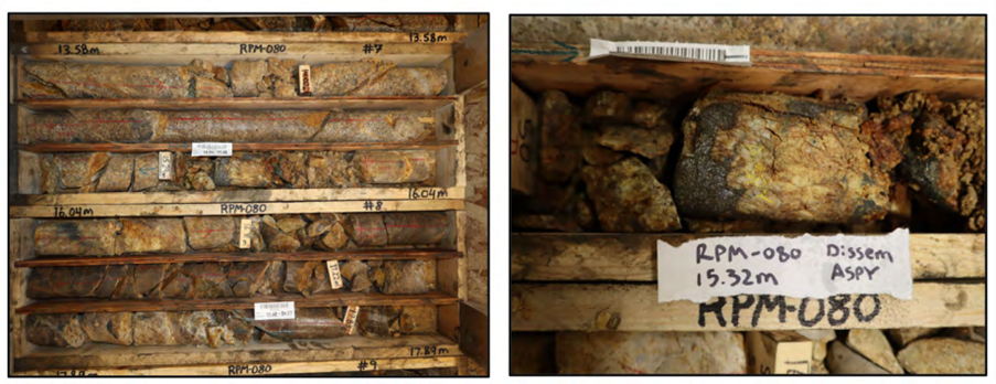 Figure 2. RPM North hole RPM-080 2.4m @ 19.7g/t Au from 15.2m