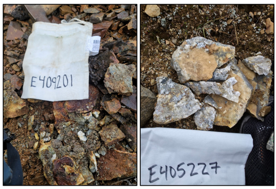 Figure 5. Sample E409201 - 24.6 g/t Au; Sample E405227 - 11.7 g/t Au