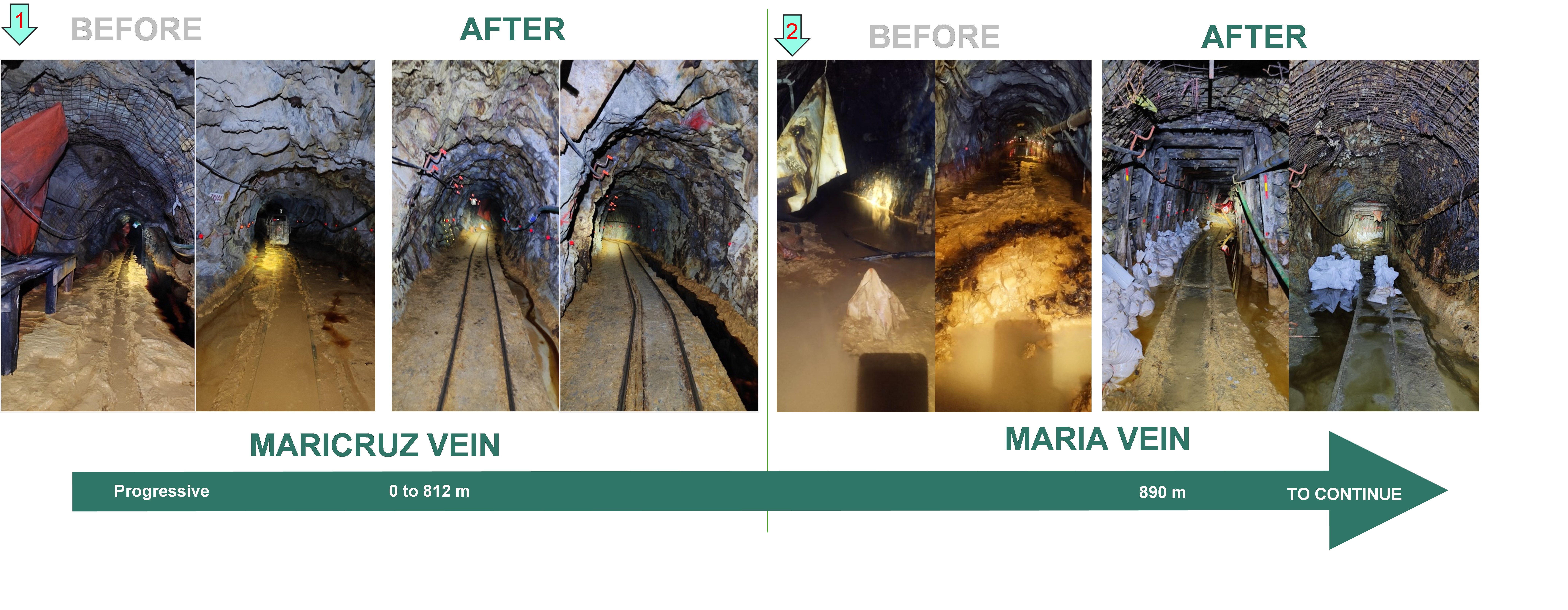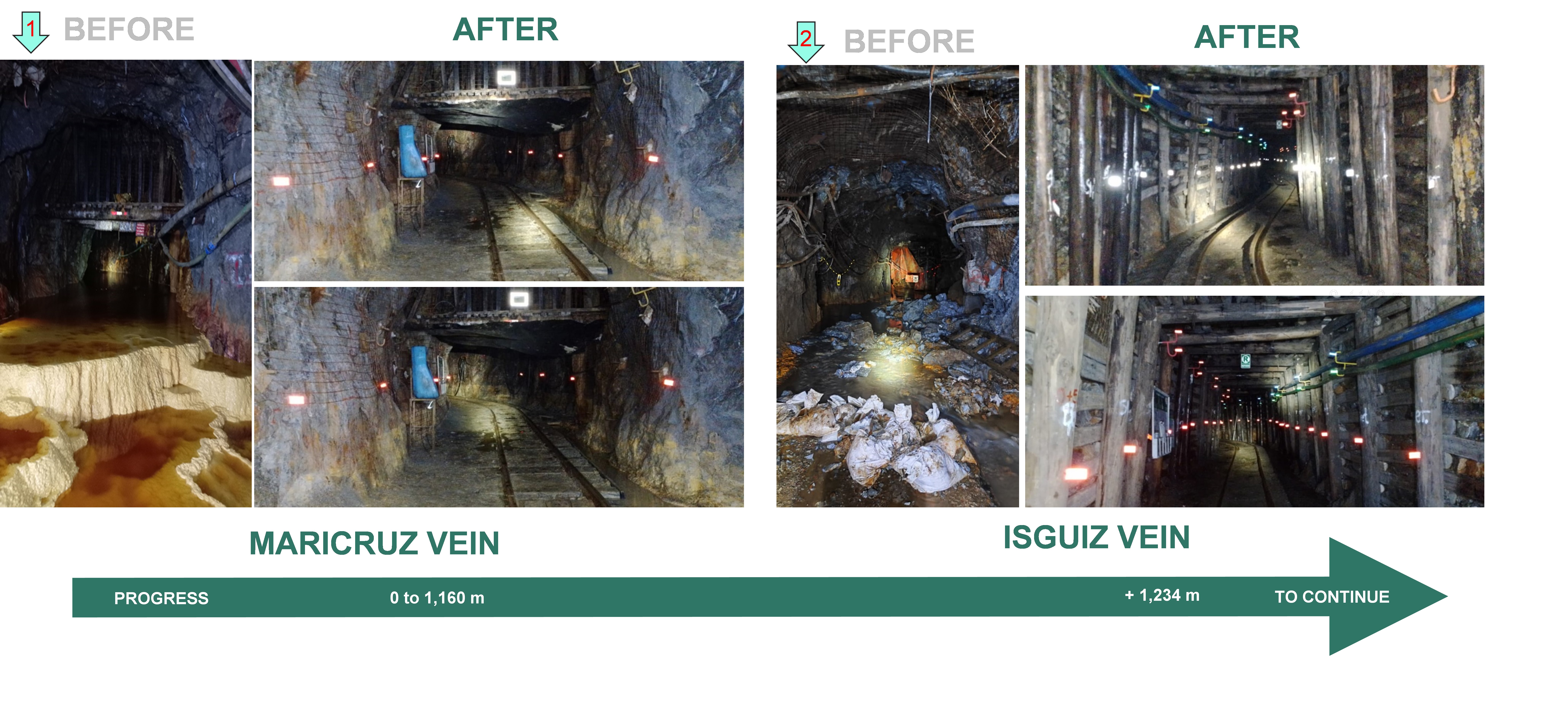 Access to the 4090 and 4150 levels is cleaned and free of debris. Rehabilitation work included roadway cleaning - access, ramp, berm and drainage, muck handling, support installation and water management/piping rehabilitation (see Figures 1 and 2 on progress, below). With sufficient access to mining underground areas completed, the Company is transitioning to mine restart.