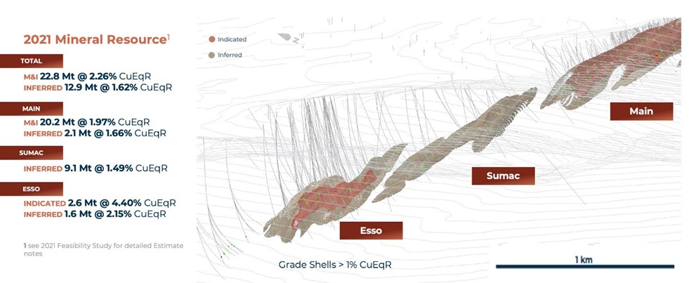 With insight from the 2021 Feasibility study mine design, access to inferred resources in the Sumac deposit and other inferred resource blocks in the periphery of the Esso deposit would be low-cost additions to the project should they be converted to higher resource confidence and the material was proven economically recoverable through appropriate study.