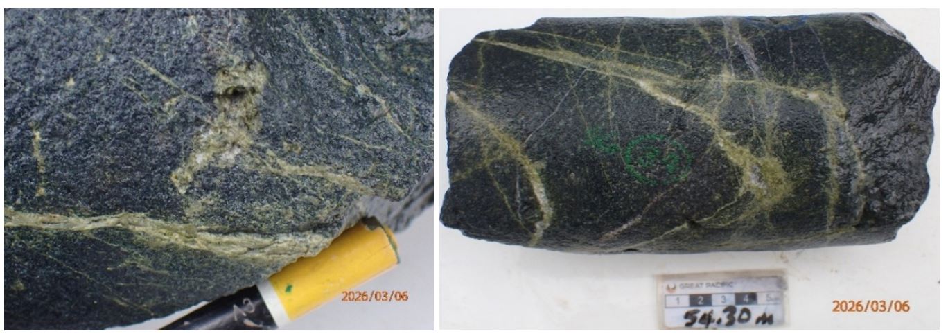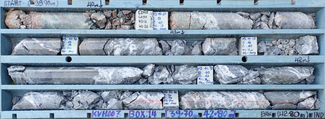 (See news release March 3, 2026, for more information) - KVH-03completed and intersected strong silica flooding and multi-phase quartz veining from approximately 5 m to 51 m downhole