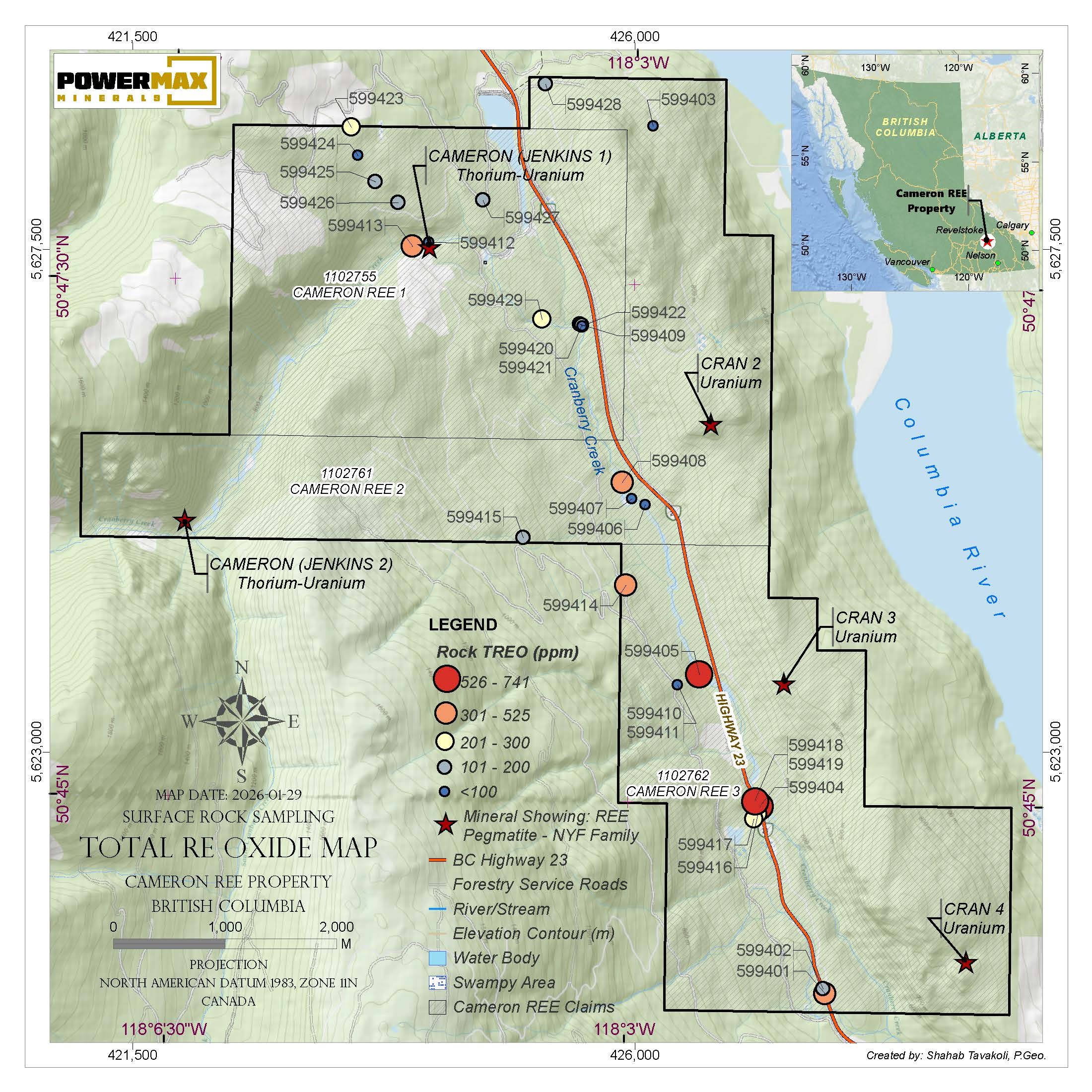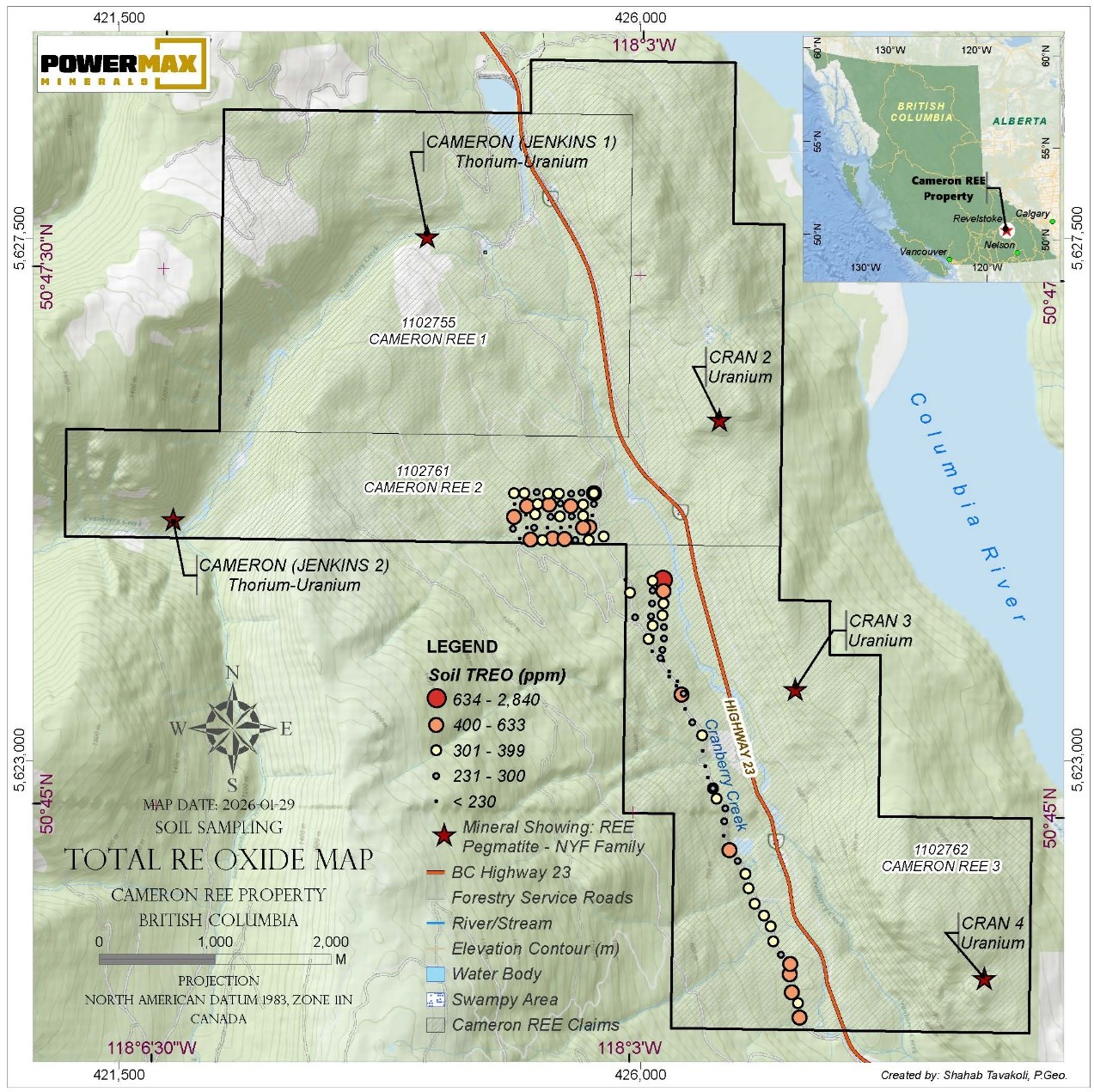 Powermax Minerals Reports Soil and Rock REE Results at Cameron Project, British Columbia