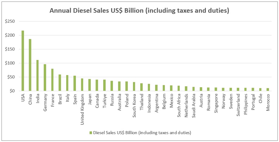 Figure 2: Total Diesel Fuel Sales in 2025 US$ Billion