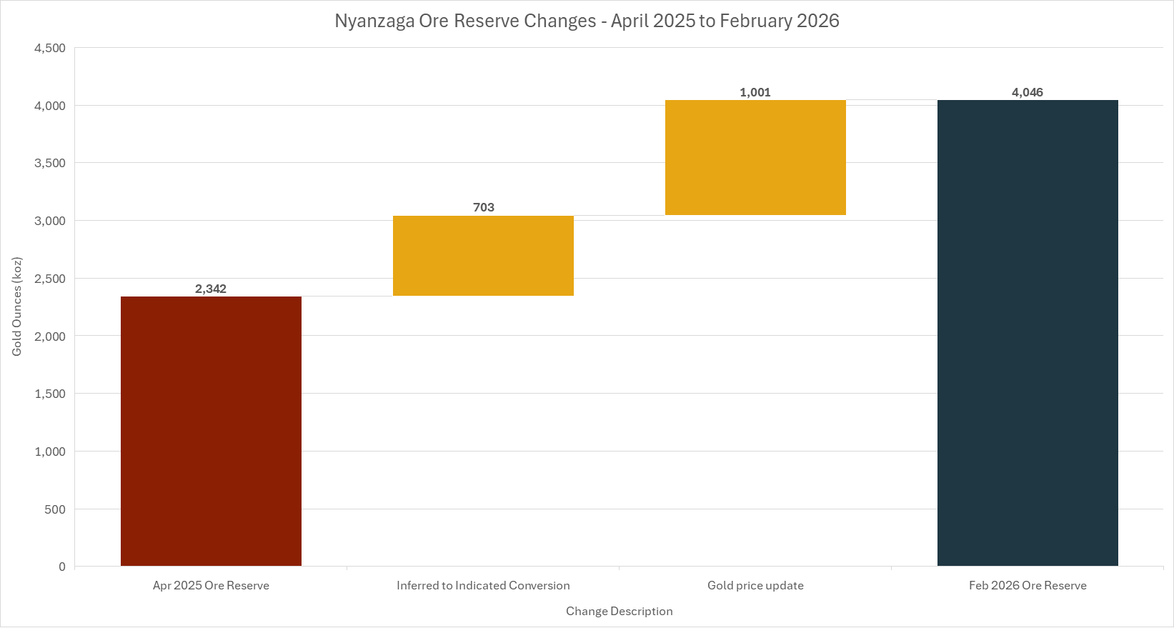 Figure 1: Nyanzaga Gold Project Ore Reserve Changes – April 2025 to February 2026