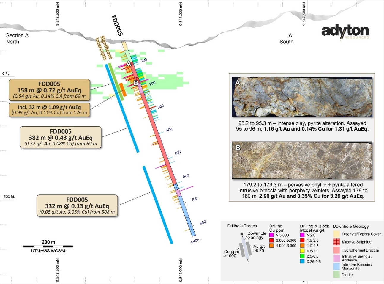 Adyton Confirms Significant Scale at Feni Gold-Copper Project: FDD005 Returns 158m @ 0.72 g/t Au.Eq (0.54 g/t Au & 0.14% Cu) and Identifies New High-Priority Drill Targets.