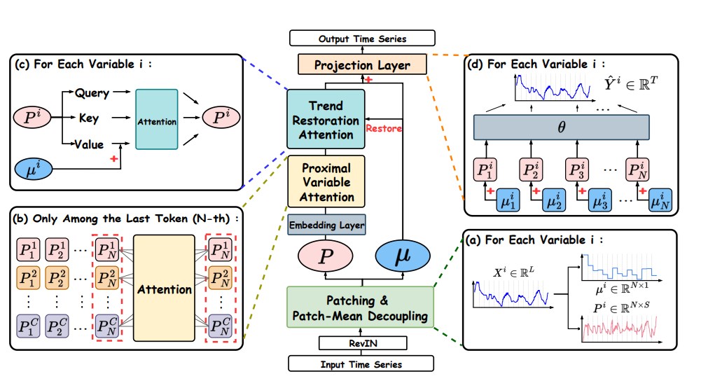 To address these challenges, PMDformerintroduces three core innovations: Patch-Mean Decoupling (PMD), which helps reduce bias from absolute magnitudes and better capture underlying fluctuation patterns; Proximal Variable Attention (PVA), which strengthens the model's focus on more relevant and timely variable interactions; and Trend Recovery Attention (TRA), which restores long-term trend information to improve both responsiveness and stability in forecasting.